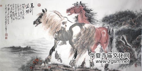 他創(chuàng)作的多件《水滸》英雄人物肖像和故事畫面,賦予那些歷史人物以生動(dòng)具體的個(gè)性化的形象,注重人物個(gè)性的刻劃。其畫面氣勢(shì)磅礴,筆墨大氣,造型獨(dú)特,看他的作品首先感到氣勢(shì)足,放得開。先生筆下的關(guān)公赤膽豪情,忠義仁勇,威武挺拔,氣宇軒昂;馬兒剛健,奔放、有氣魄;魯智深魯莽溫厚;李逵粗豪中顯露天真?梢娤壬鷼v史文學(xué)功底修養(yǎng)和畫思想象力之弘富。