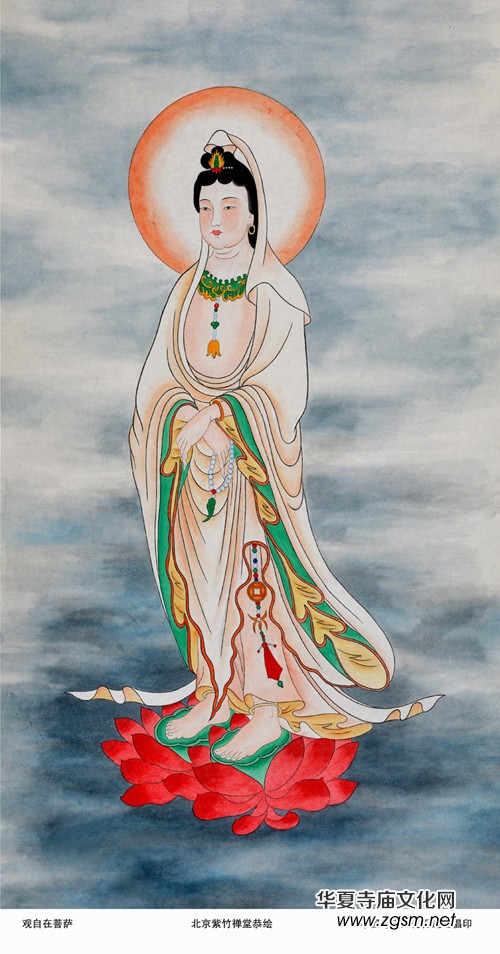 清泉為人低調(diào),平日以靜修佛法,恭繪佛像為主,佛教繪畫是靠畫家們對(duì)宗教的理解和認(rèn)識(shí)形象實(shí)現(xiàn)在繪畫中,也是宗教利用畫家的生活、感情、技巧和匠心把宗教精神凝結(jié)和體現(xiàn)在畫中的,林清泉臨摹的敦煌壁畫屬于勾染法中大著色的工筆重彩,以石色渲染為主,薄色重疊,最后開臉。這種畫法,使畫面充實(shí),靈動(dòng),感染力強(qiáng)。色調(diào)多用白、綠、土紅、赭石、青、黑等礦物色,現(xiàn)代人將這色調(diào)稱之為“敦煌色調(diào)”。用這些色調(diào)和成間色、間色之間再次配比、協(xié)調(diào),不管恢弘巨構(gòu)還是婉轉(zhuǎn)深情的小品,都表達(dá)的淋漓盡致。