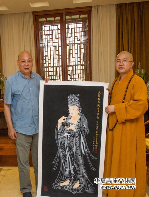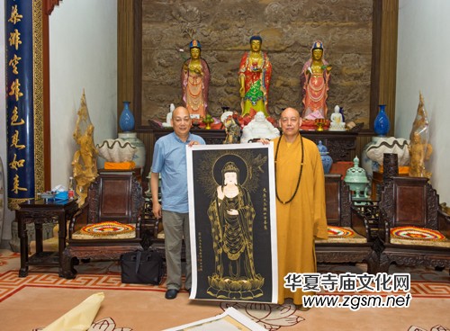 普陀山道慈大和尚與韓必恒大師探討觀音佛像