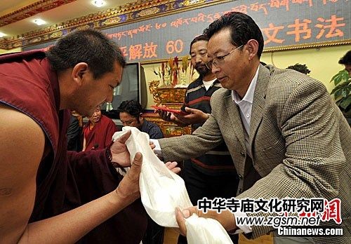 為了慶祝西藏和平解放60周年,西藏格魯派最大寺廟哲蚌寺于2011年5月13日舉辦了全寺僧人書法大賽。為了舉辦好此次書法比賽,哲蚌寺特別邀請了西藏自治區(qū)文聯(lián)著名書法家拉巴次仁為評審委員會成員。通過評審,提交的121幅作品中最終有24幅作品獲獎,平措扎巴、阿旺索加、阿旺色吉等僧人分別獲得藏文“吾尖”、“珠策”、“粗同”、“球體”藏文字體的書法獎項。