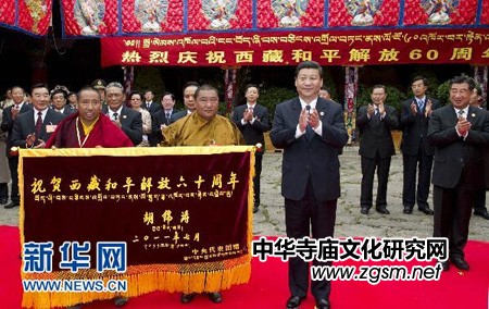 正在拉薩出席西藏和平解放60周年慶;顒(dòng)的中共中央政治局常委、國(guó)家副主席、中央軍委副主席、中央代表團(tuán)團(tuán)長(zhǎng)習(xí)近平,2011年7月20日來(lái)到大昭寺,看望慰問(wèn)西藏宗教界愛(ài)國(guó)人士。