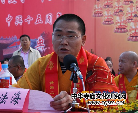 省佛教協(xié)會副會長、五臺山黛螺頂住持昌善法師宣讀省佛協(xié)賀信