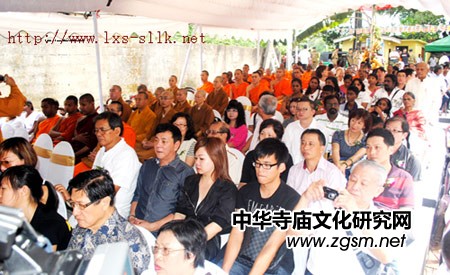 9點15分,國際佛教中心舉行的奠基儀式在The Dhamma Voice international Buddhist Centre, 99/2, Pattiwila Road, Gonawala, Kelaniya, Srilanka 舉行,斯里蘭卡長老Mahanayake Thera、泰國高僧Seck Kong Hian、新加坡學航法師主法,上百位僧伽齊誦經(jīng)典,梵音嘹亮。