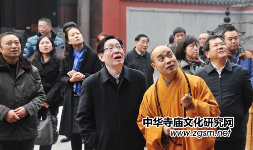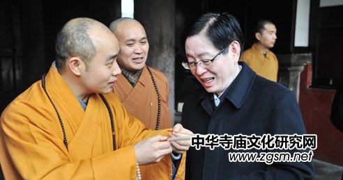 2013年1月16日下午14時(shí)30分,國家宗教事務(wù)局局長王作安,國家宗教事務(wù)局辦公室主任陳紅星,國家宗教事務(wù)局一司佛教處處長王蕾等一行,在四川省宗教局局長姚斌,四川省宗教局副局長楊伯明,成都市副市長田蓉,成都市委統(tǒng)戰(zhàn)部副部長、市民宗局局長周萬生,成都市民宗局副局長王忠明,成都市民宗局宗教一處處長蘇強(qiáng)等陪同下調(diào)研并指導(dǎo)成都文殊院工作。成都文殊院方丈宗性大和尚、首座智海法師等諸位法師熱情接待,并陪同參觀。
