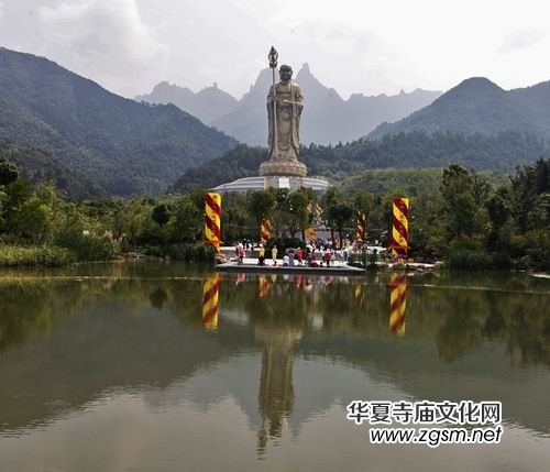 8月31日九華山地藏菩薩圣像開光慶典法會在安徽省九華山大愿文化園舉行,來自海內(nèi)外的99位佛教泰斗、高僧大德、諸山長老共同為地藏菩薩圣像開光。建成后的地藏菩薩圣像坐落在九華山大愿文化園,為比丘立相,右手執(zhí)錫杖,左手托摩尼寶珠,儀態(tài)安詳,妙相莊嚴,觀瞻總高度139米,蓮花座及像體高99米,為目前世界上第一高度地藏菩薩露天圣像。大愿文化園景區(qū)占地1500余畝,東西軸線長1910米,可供6萬人同時參觀游覽。