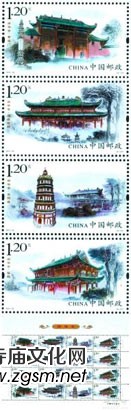 早在1995年,我國就發(fā)行了宗教主題的《少林寺建寺1500年》特種郵票,隨后與宗教相關(guān)的系列特種郵票不斷發(fā)行,包括2000年發(fā)行的以位于青海省的中國藏傳佛教格魯派六大寺院之一塔爾寺為主題的4枚《塔爾寺》特種郵票,2003年發(fā)行的《鐘樓與清真寺》共2枚特種郵票,以及2009年甘肅省首發(fā)的《拉卜楞寺》特種郵票。大多具有濃郁的地方特色,別具風情。