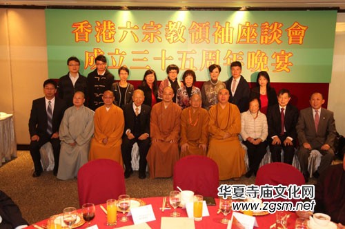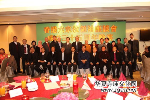 今年欣逢六宗教領(lǐng)袖座談會成立35周年,2013年11月28日假港島富豪香港酒店舉行「香港六宗教領(lǐng)袖座談會成立三十五周年晚宴」以志慶賀,并邀請香港中文大學(xué)文學(xué)院副院長賴呂超教授、中文大學(xué)文化及宗教研究系系主任黎志添教授及中文大學(xué)中國文化研究所所長李熾昌教授為晚會嘉賓。