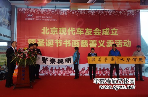 圣誕節(jié)期間,由安陽市慈善總會、安陽市團(tuán)市委、0372車友會、北京現(xiàn)代萬源旗艦店聯(lián)合舉辦的知名書畫家作品慈善義拍活動,在萬源旗艦店內(nèi)進(jìn)行。參加這次圣誕節(jié)書畫慈善義拍活動的書畫家有:洹上名家、安陽市文峰區(qū)美協(xié)主席戴五愛,副主席王世金、徐振海,書協(xié)主席王宏方、副主席張忠剛,攝協(xié)主席尚紅軍組織參與了書畫活動。書畫家們現(xiàn)場潑墨揮毫,義寫義賣獻(xiàn)愛心,場面緊張熱烈,成交額可觀,這批義拍款昨日已捐贈給都里鄉(xiāng)一所貧困小學(xué)。