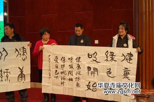 啟動儀式上,組委會向到會的單位頒發(fā)了“綠色呼吸健康工程萬里行公益活動”發(fā)起單位證牌。本報主編靳新國特為活動書寫了“健康從綠色呼吸開始”。