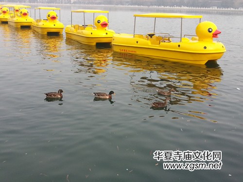 四人黃鴨電動船落戶什剎海野鴨島