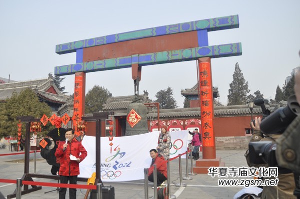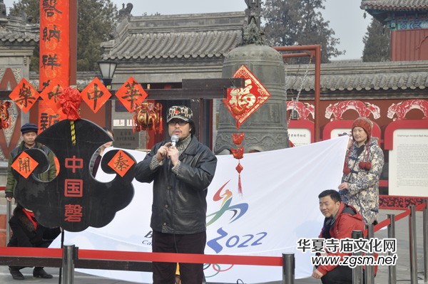 活動上以同時撞響大鐘和中國磬九下來祝福祖國昌盛,活動上并展開五環(huán)旗,為北京和張家口申請冬奧會助陣。