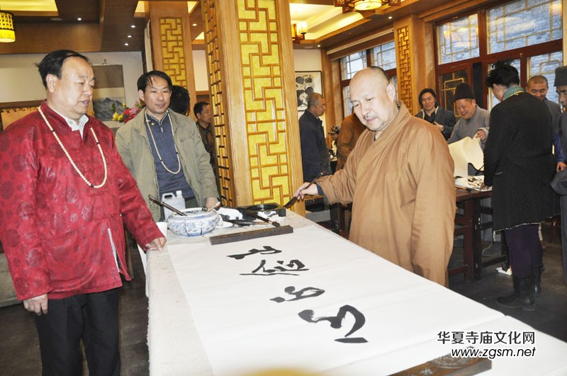 靳會(huì)長(zhǎng)與五臺(tái)山普化寺主持釋妙生大和尚揮毫吟對(duì)