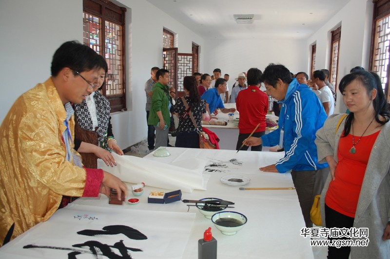 3點隨著齊國章主任的一聲宣布:“詩書畫筆會現(xiàn)在開始”,到會的六十多位書畫家們開始揮毫潑墨,清涼寺“清涼書院”內文風大開,筆走龍蛇。筆會直到下午6點30分。