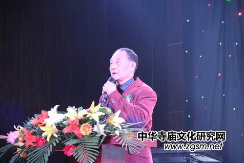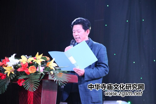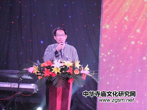 圖為中國寺廟文化促進會會長、《科技信息報·今日文教》周刊主編靳新國(笑琰)在致辭