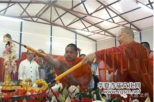 時節(jié)和合,因緣具足,時2015年5月19日,在大愿大和尚與老撾佛教協(xié)會主席、百歲僧王所結(jié)下的殊勝法緣下,經(jīng)由國家宗教局批準(zhǔn),老撾僧王Most Ven.Phong Samaleuk蒞臨我國廣西進(jìn)行佛教文化交流活動,順此因緣,廣西合山靈巖寺及廣大信眾聯(lián)合發(fā)力,為老撾僧王舉辦百歲壽誕和浴佛法會,壽誕慶典于21日在廣西合山市舉辦,廣西南寧市和來賓市等政府各級領(lǐng)導(dǎo)、地方信眾以及全國各地慕名而來的信眾上千人前來給僧王賀壽。