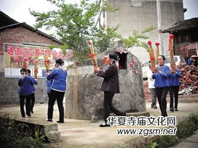 記者注意到,在坪陽,分布著很多一米見方的薩歲廟。薩歲是侗族人的遠祖母神。在坪陽街道邊的民房,很多墻角貼著“鐘馗當邪路”的靈符。村民楊剛弟告訴記者,“這是因為房子一部分對著馬路,犯沖,以這樣的方法破解!