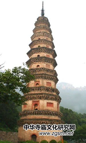 靈巖寺中的辟支佛塔始建于宋淳化五年(994年),竣工于嘉祐二年(1057年),歷時63年完工!氨僦А背鲇诜鸾,音譯為“辟支迦佛陀”,略稱“辟支佛”,辟支塔,意即辟支佛塔。辟支塔為一座八角九層樓閣式磚塔,塔高55.7米,塔基為石筑八角,上有浮雕,鐫刻有古印度孔雀王朝阿育王皈依佛門等故事。塔身為青磚砌就,各層皆施腰檐,下三層為雙檐,二至四層檐下置平座。塔檐與塔徑自下而上逐層遞減,收分得體。塔內(nèi)一至四層設(shè)塔心柱,內(nèi)辟券洞,砌有臺階,可拾級而上,自第五層以上砌為實體,登塔須沿塔壁外腰檐左轉(zhuǎn)90度進入上層門洞。塔身上置鐵質(zhì)塔剎,由覆缽露盤、相輪、寶蓋、圓光、仰月、寶珠組成,自寶蓋下垂八根鐵鏈,由第九層塔檐角上的八尊鐵質(zhì)金剛承接,在塔內(nèi)延續(xù)到地下,起避雷作用。辟支塔氣勢雄偉、造型美觀、結(jié)構(gòu)復(fù)雜、比例適當,呈典型的宋代風(fēng)格,為靈巖寺標志性建筑。宋代文學(xué)家曾鞏有詩贊曰“法定禪房臨峭谷,辟支靈塔冠層巒”。