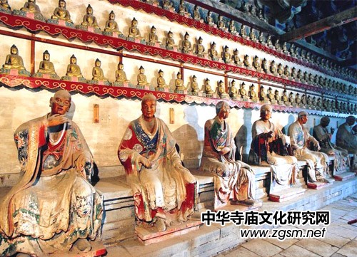 供奉在寺院千佛殿內(nèi)的四十尊彩色泥塑羅漢像,是靈巖寺內(nèi)最受廣大游客和專家們稱道的。其中有三十二尊塑于宋治平三年(1066年),八尊補塑于明萬歷年間(1573~1620年)。這些塑像皆坐于80公分高的磚砌束腰座上,羅漢像頂距座面高度在105至110公分之間。古代藝術(shù)家們在塑造這些羅漢像時,打破傳統(tǒng)的佛教造像模式,側(cè)重 于寫實,具有濃郁的世俗氣息和現(xiàn)實生活情趣,以形寫神,以神表情,以情現(xiàn)心,重在體現(xiàn)每尊羅漢的個性與特點,重在刻畫出羅漢的內(nèi)心世界,使之真實、生動,更接近于生活。一位醫(yī)學(xué)界人士說,透過羅漢的袈裟,能看出古人對人體解剖學(xué)的準確把握。