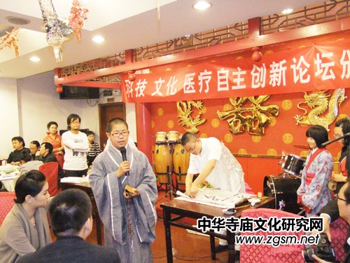 中國寺廟文化促進(jìn)會副會長圣明法和理事能成法師在活動現(xiàn)場