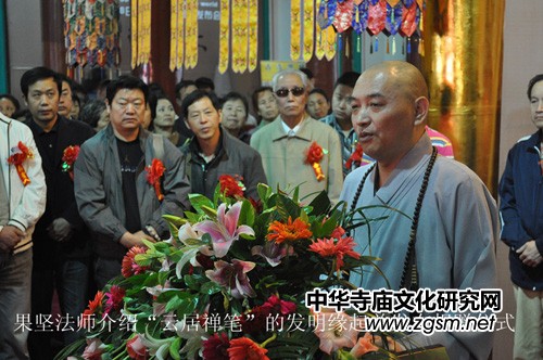 2011年6月,果堅(jiān)法師拜訪百歲國學(xué)大師文懷沙老先生,向大師詳細(xì)介紹了大唐御宣素筆之后,文懷沙老先生欣然為大唐御宣素筆題字“云居禪筆”。 而在2011年9月18日,北京云居寺舉辦了云居禪筆全球佛寺贈送發(fā)布會,將云居禪筆作為全球佛教寺院的開光筆贈送給全球佛教寺院,真正實(shí)現(xiàn)云居禪筆結(jié)緣天下的美好愿望。